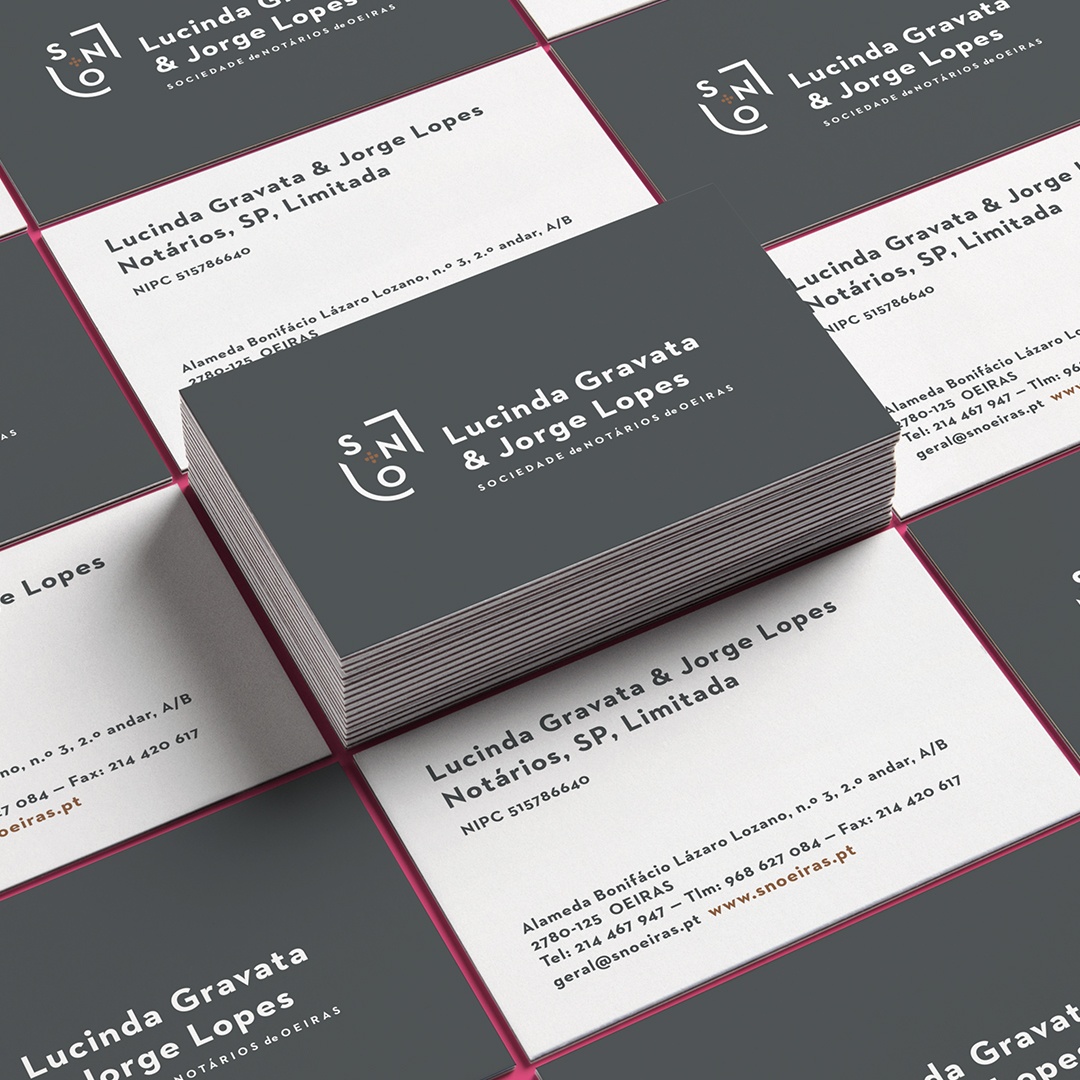 Identity development and communication mood design for SNO Sociedade de Notários de Oeiras.
