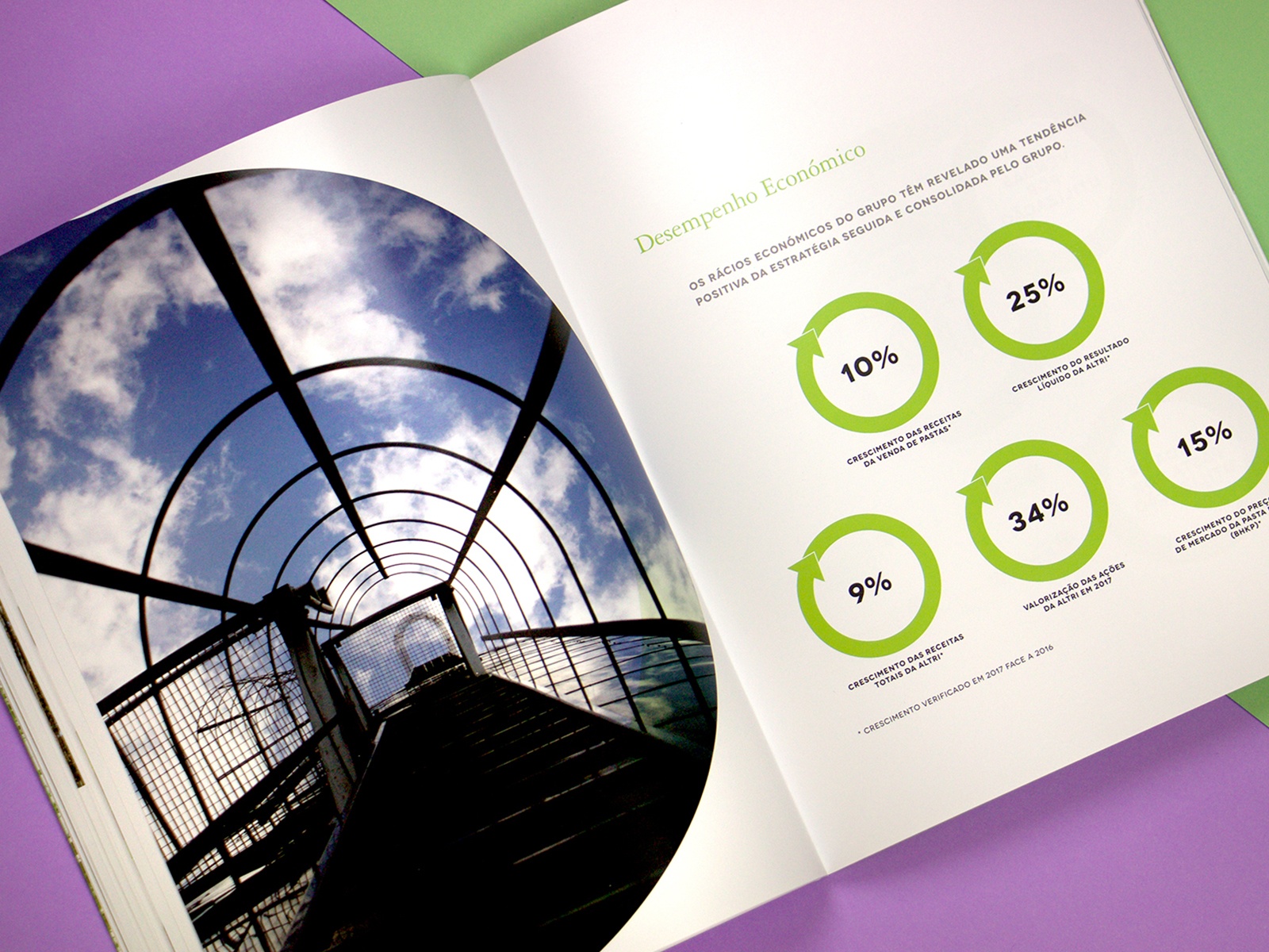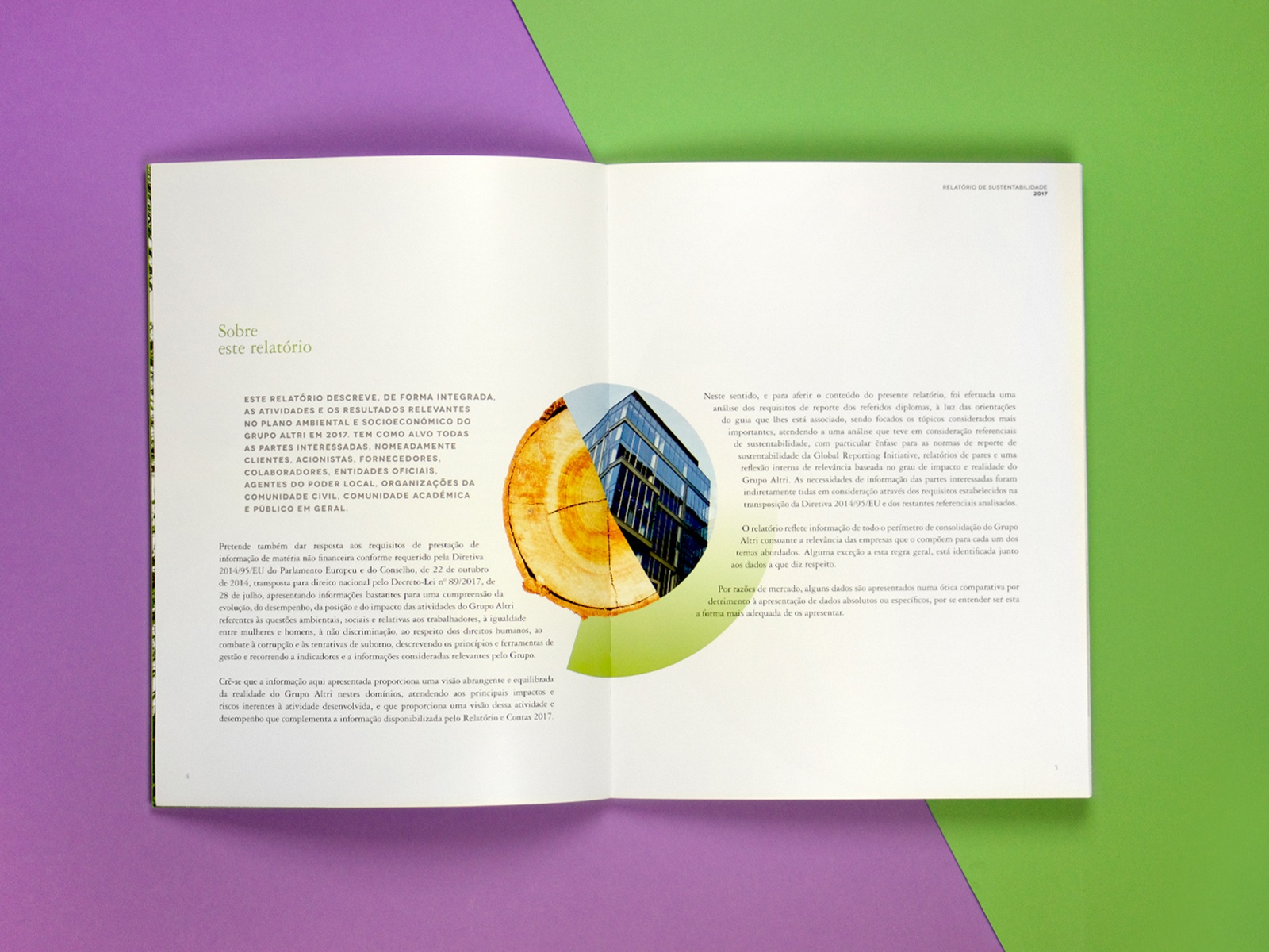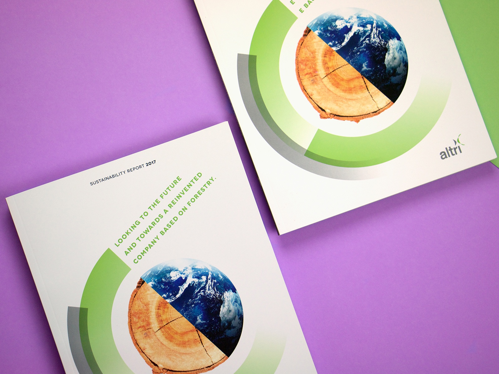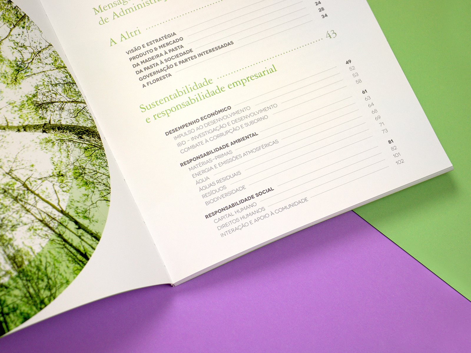 Projeto de design editorial para o relatório anual de sustentabilidade da Altri.