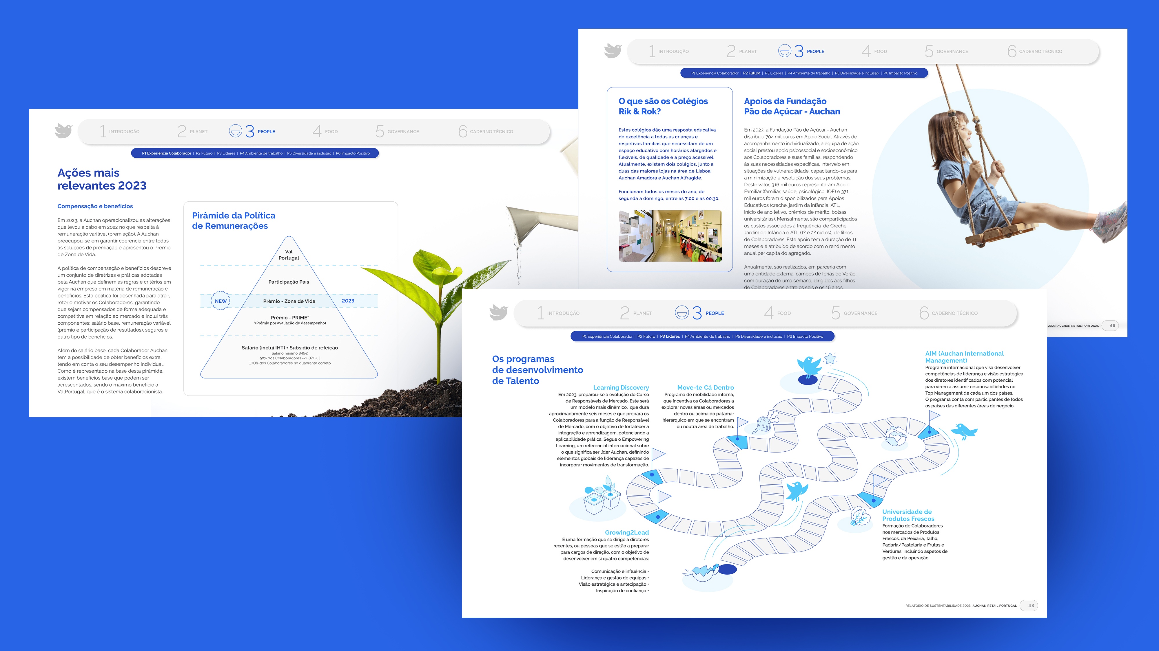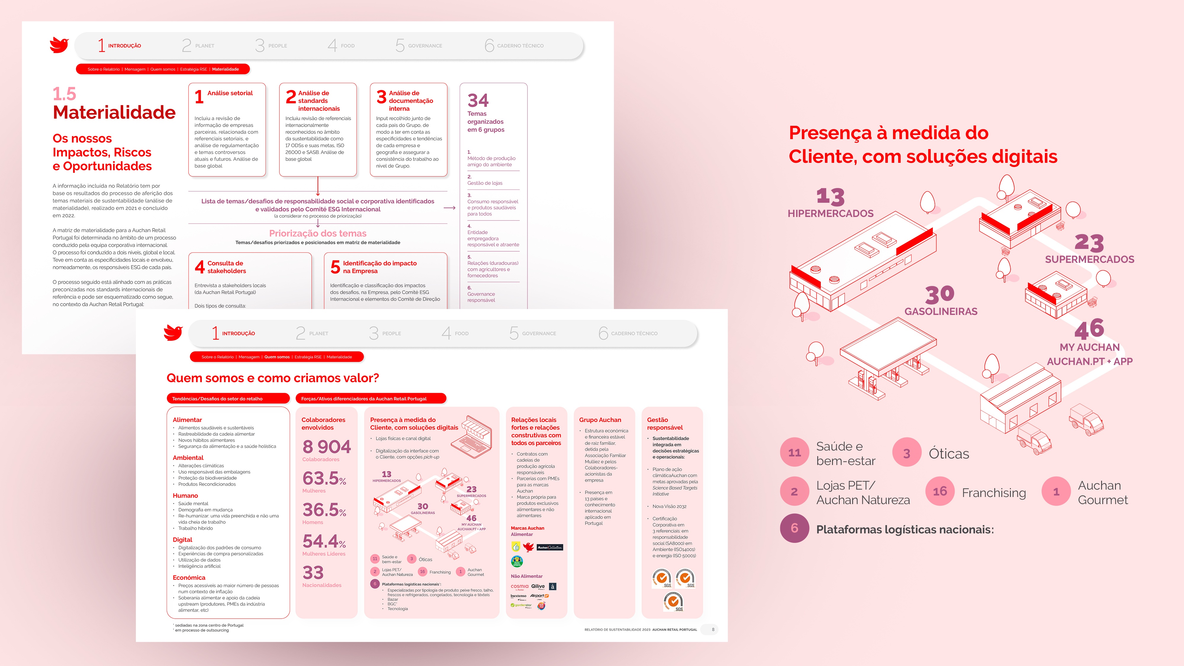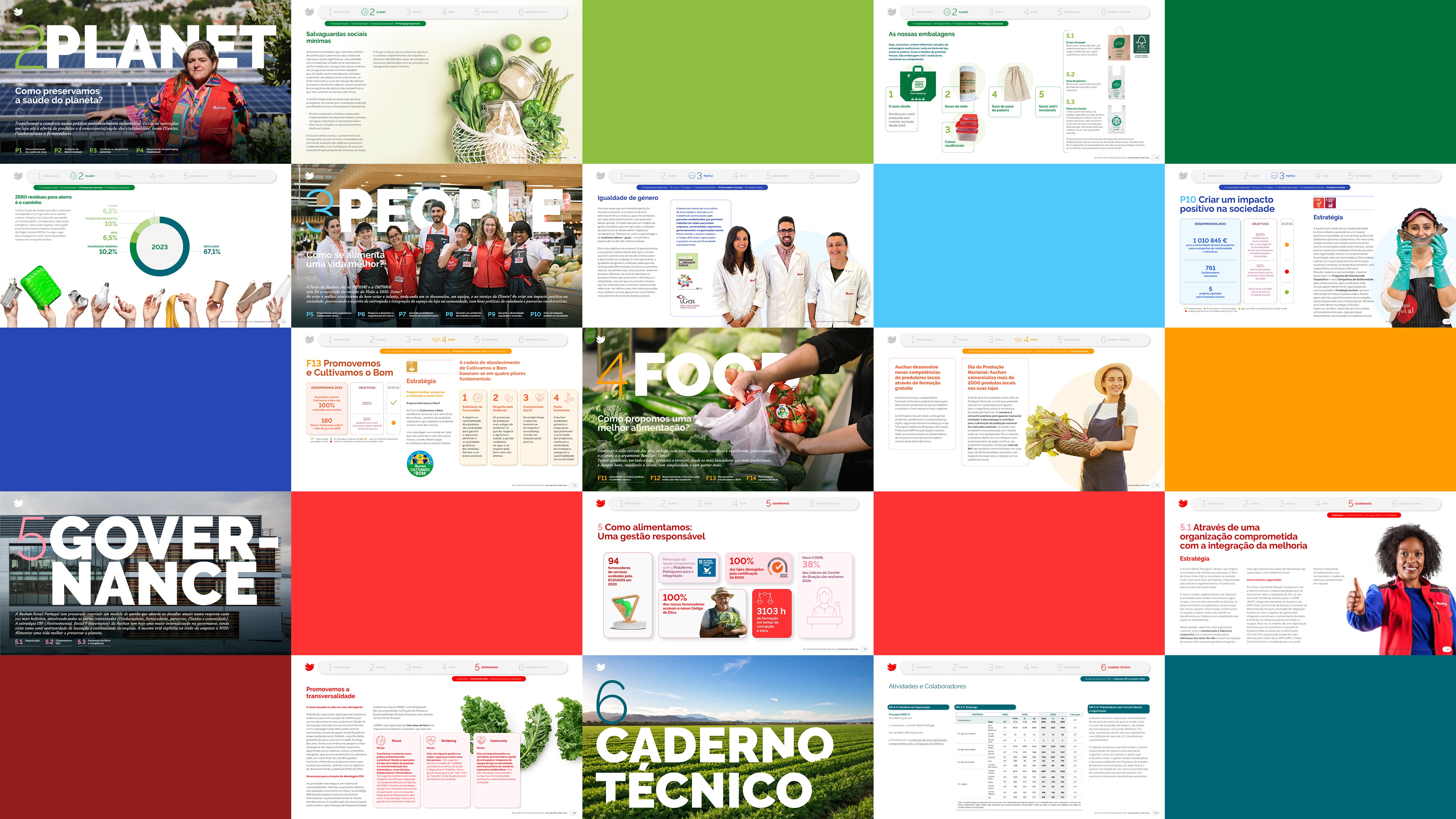 Projeto de design editorial do relatório digital de sustentabilidade de 2023 para o Auchan Retail Portugal