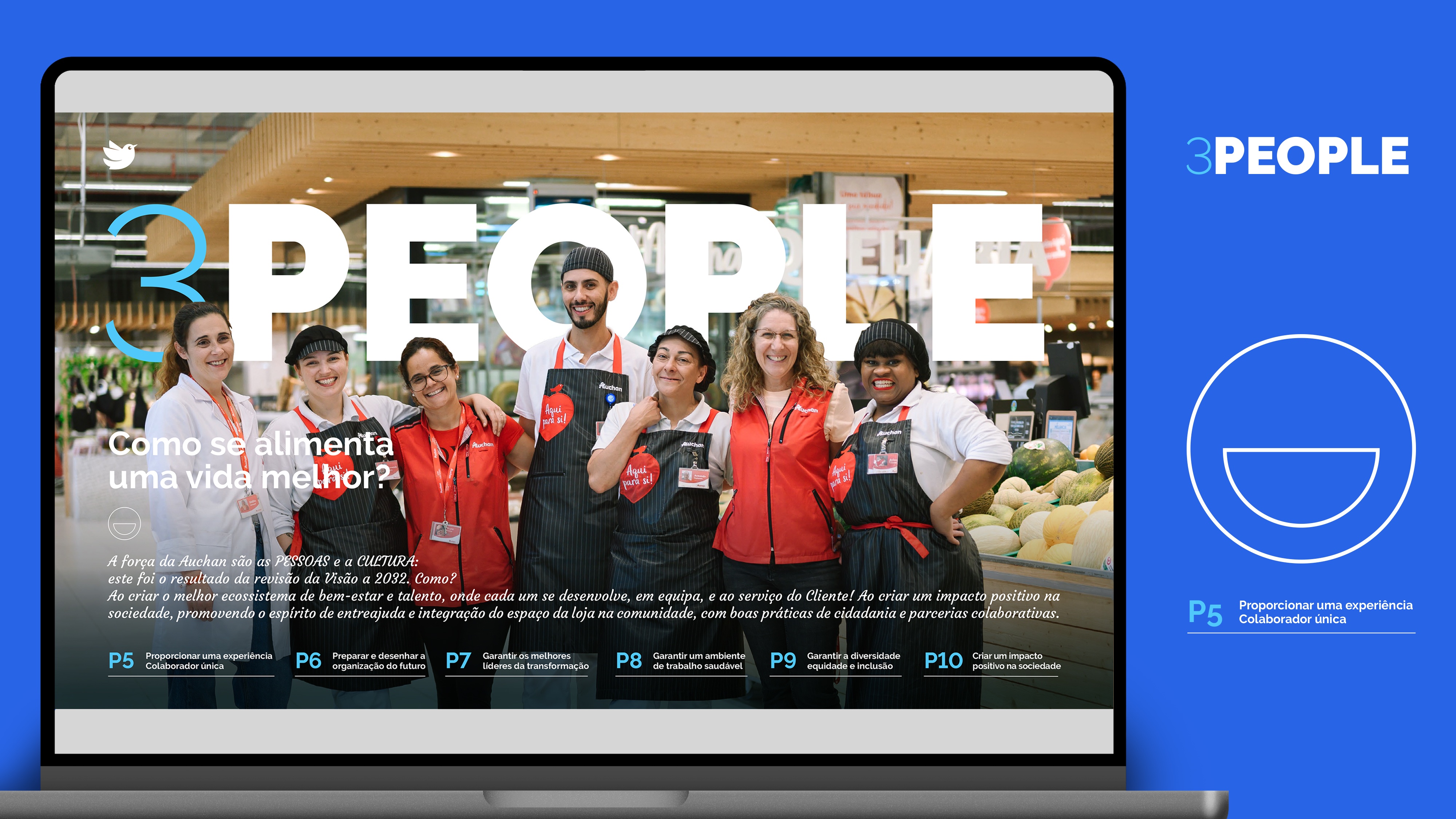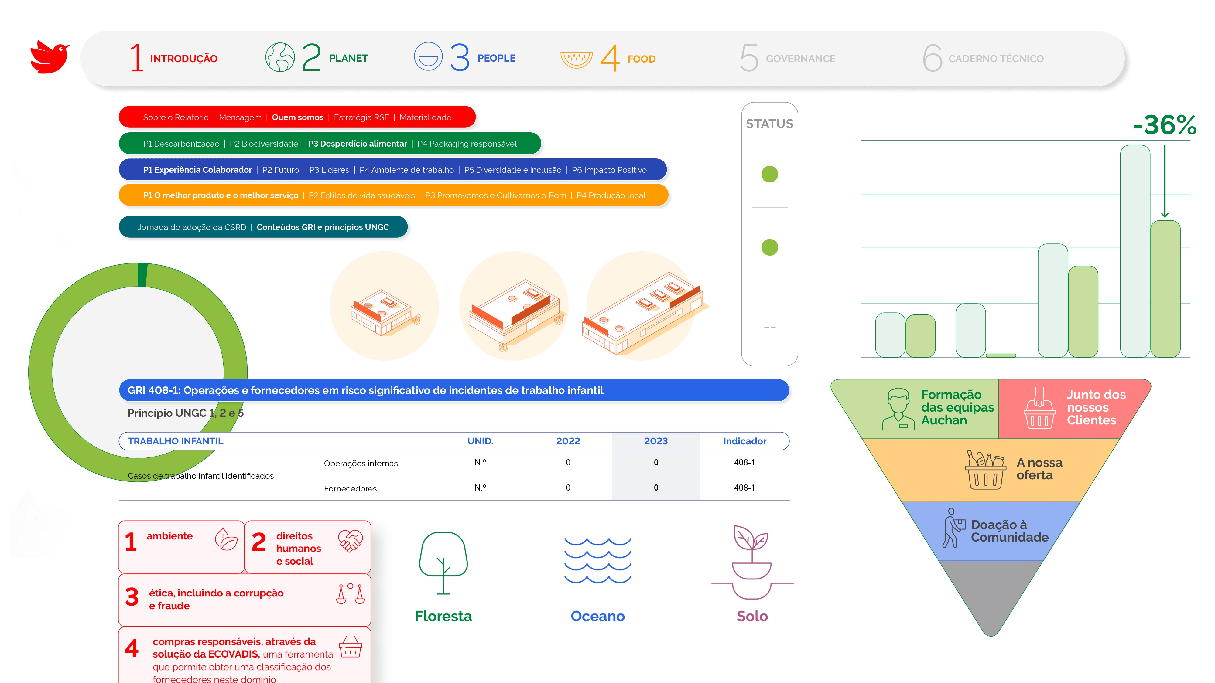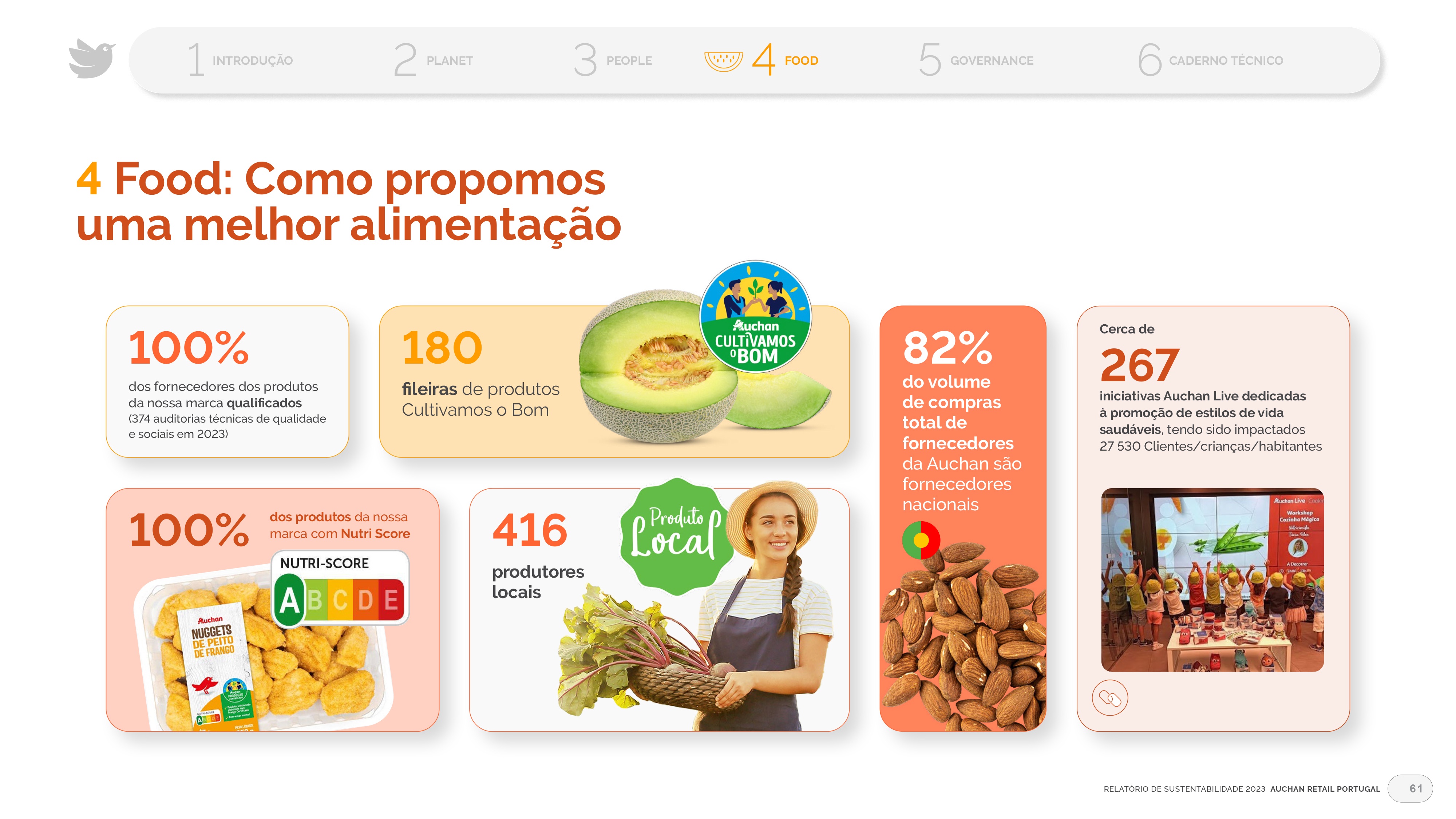 Projeto de design editorial do relatório digital de sustentabilidade de 2023 para o Auchan Retail Portugal