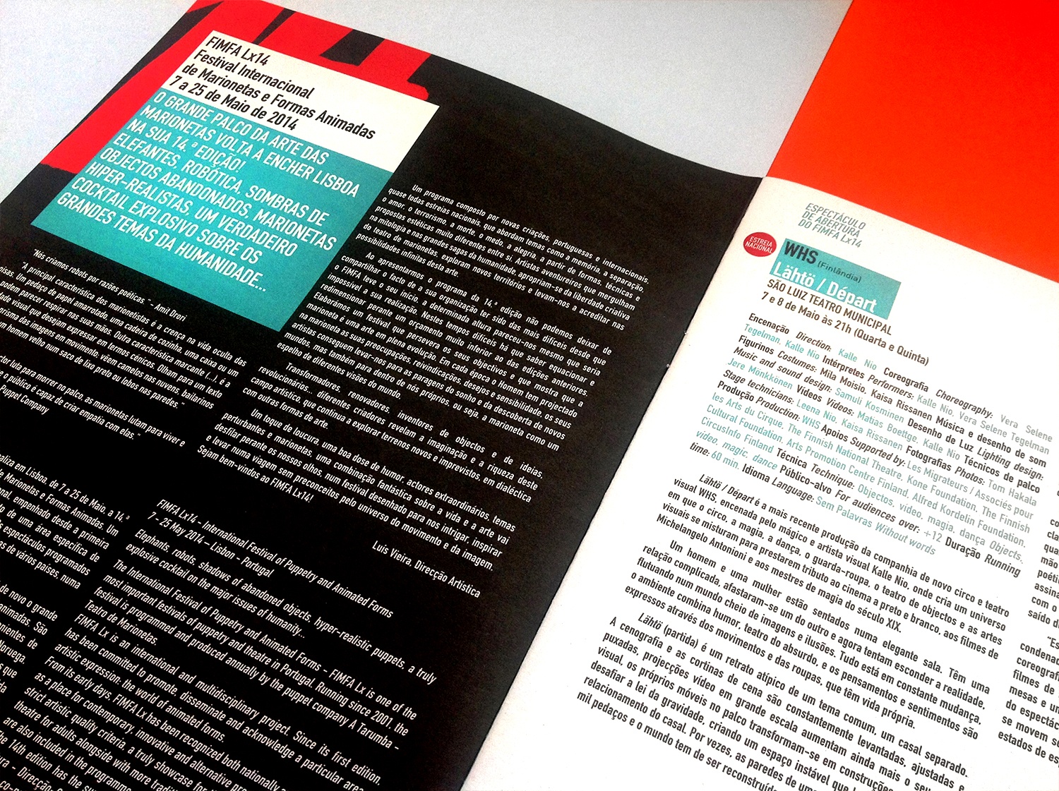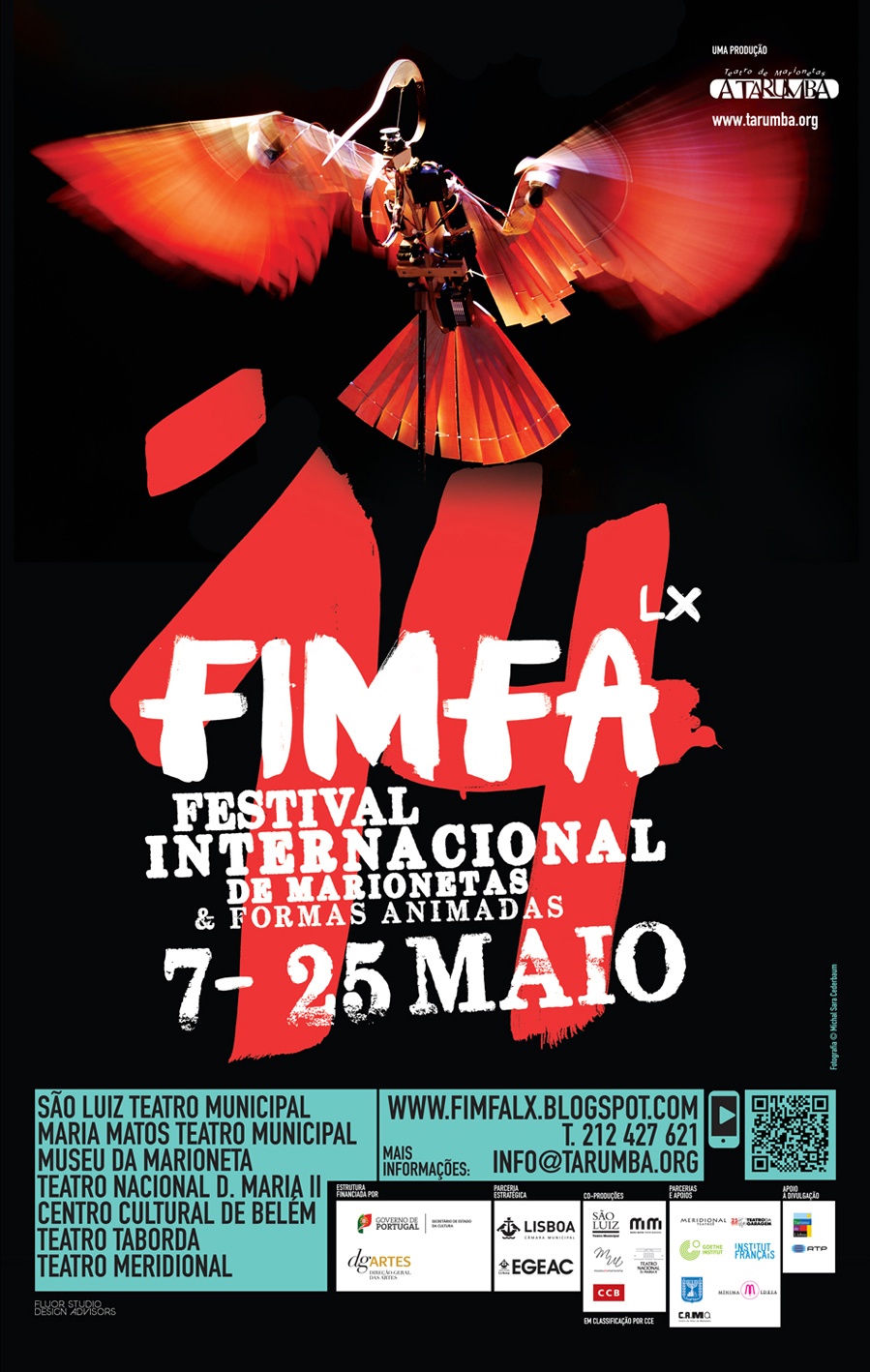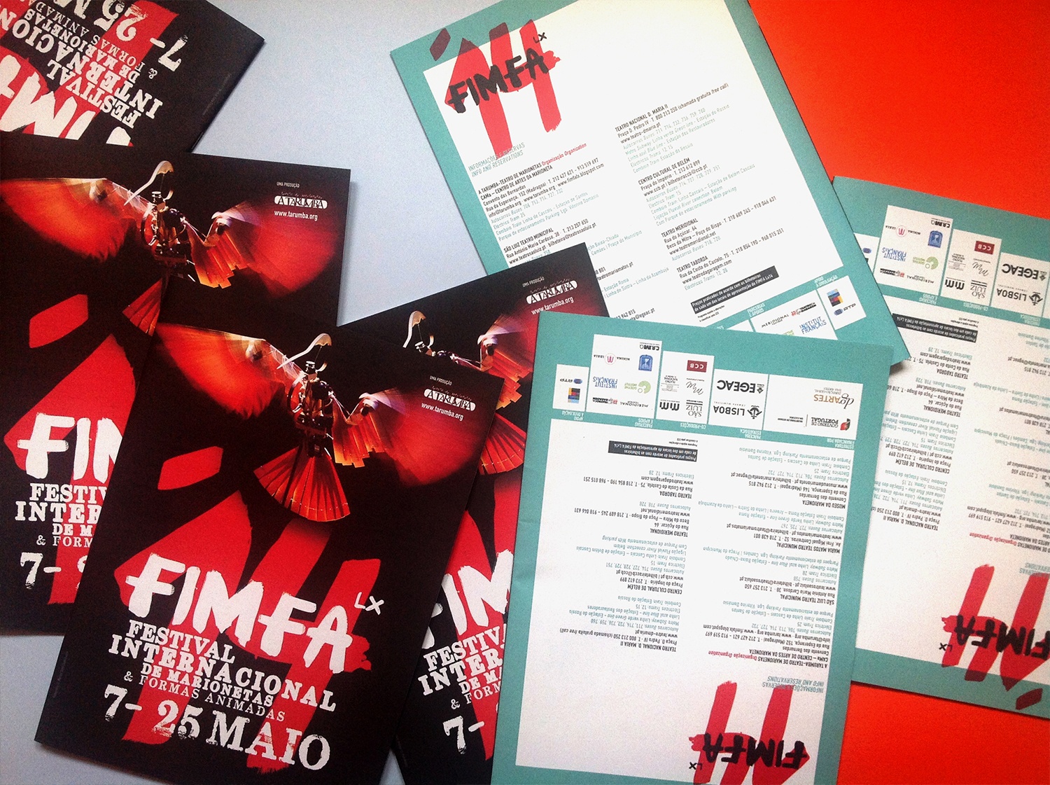 Pelo segundo ano a “Tarumba” fez-nos o convite para a criação da identidade e comunicação da 14ª edição do Fimfa Lx - Festival Internacional de Marionetas e Formas Animadas de Lisboa. O conceito e imagem final resulta de um equilíbrio e junção de 3 elementos: uma presença forte do pássaro mecânico da peça “Savanna” de Amit Drori (imagem), uma tipografia manual e performativa criada pelo nosso estúdio e um jogo geométrico de organização de informação. A comunicação desenvolveu-se em 3 peças chave: o mupi, o flyer e o programa.