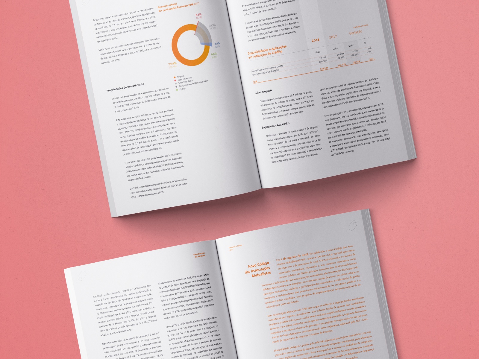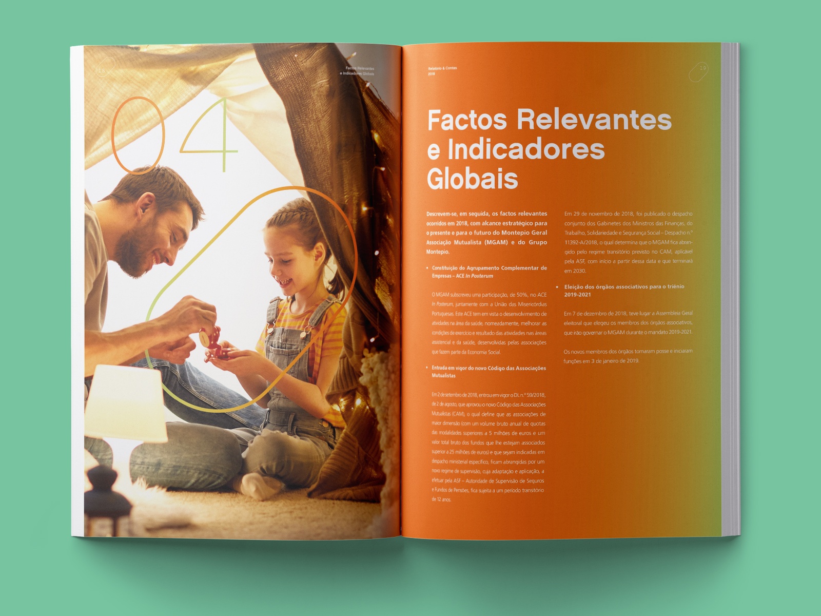 A AMM aposta na proximidade e estabilidade das famílias. Foi neste contexto que desenvolvemos o conceito do R&C 2018. Através de uma forma recorrente do léxico visual da AMM, conferimos-lhe uma nova abordagem, em que a proximidade e união fossem prepoderantes. A união geracional está presente em cada capítulo do relatório, lembrando sempre que se trata de uma Associação ao serviço das famílias.