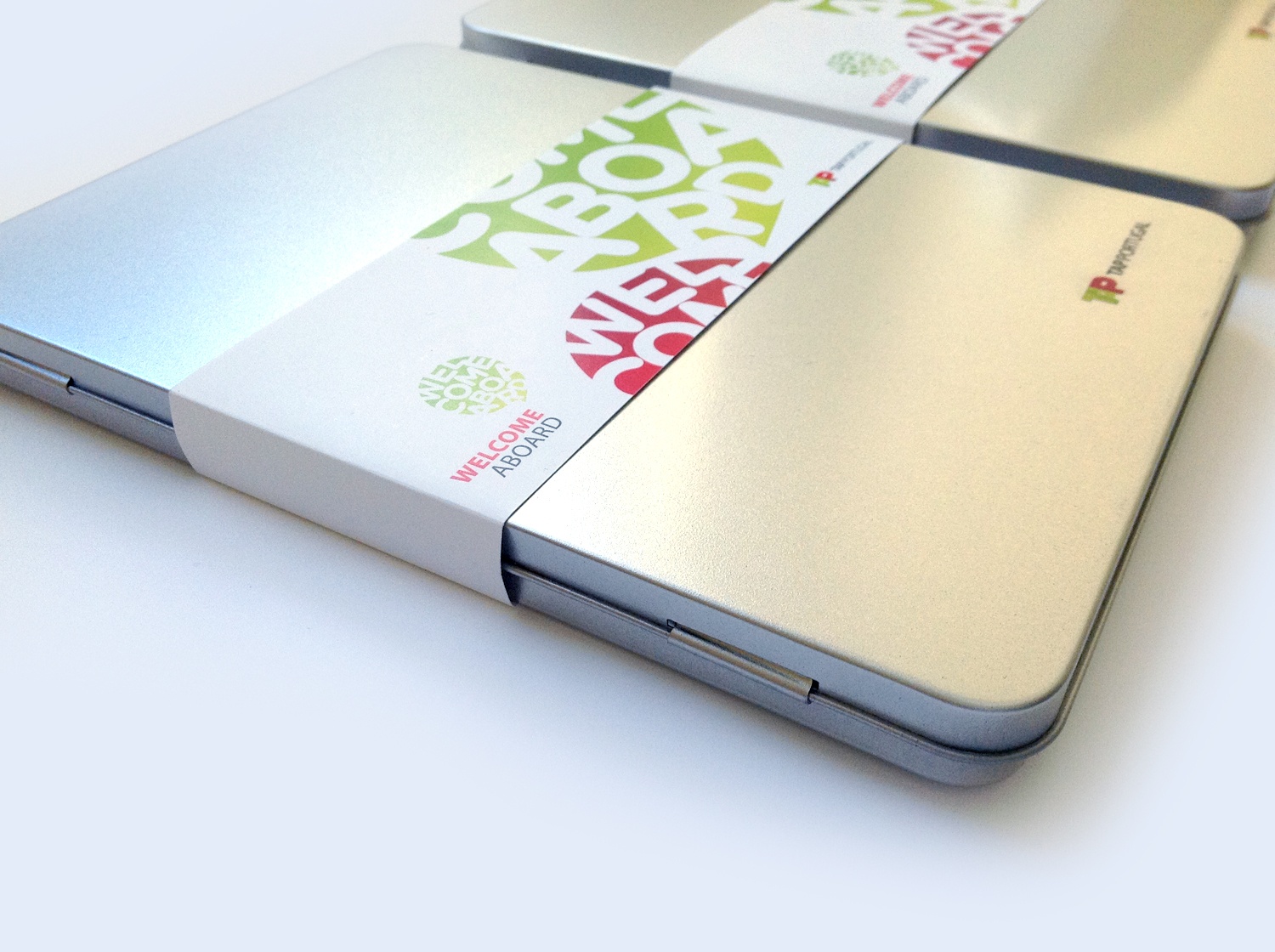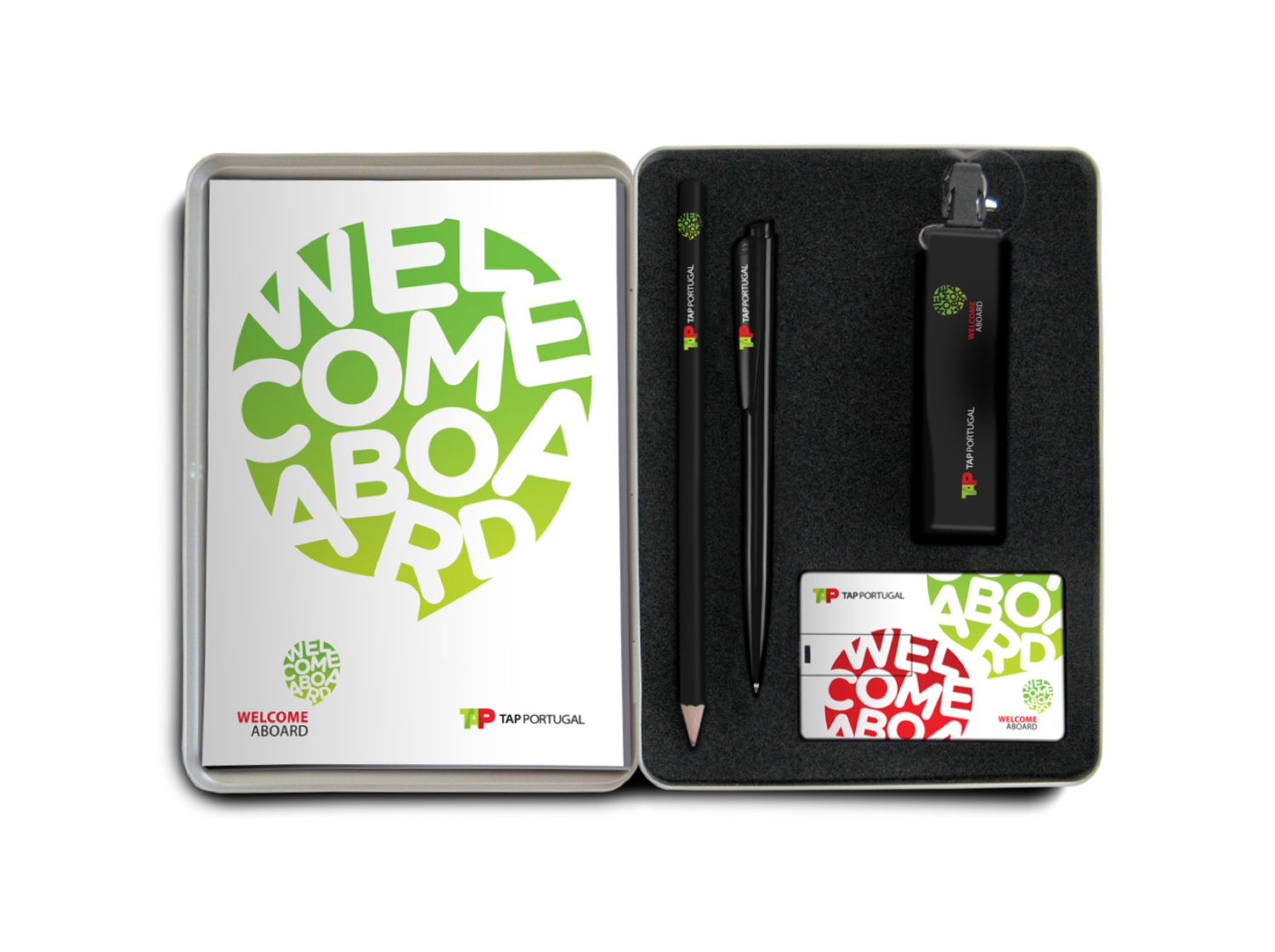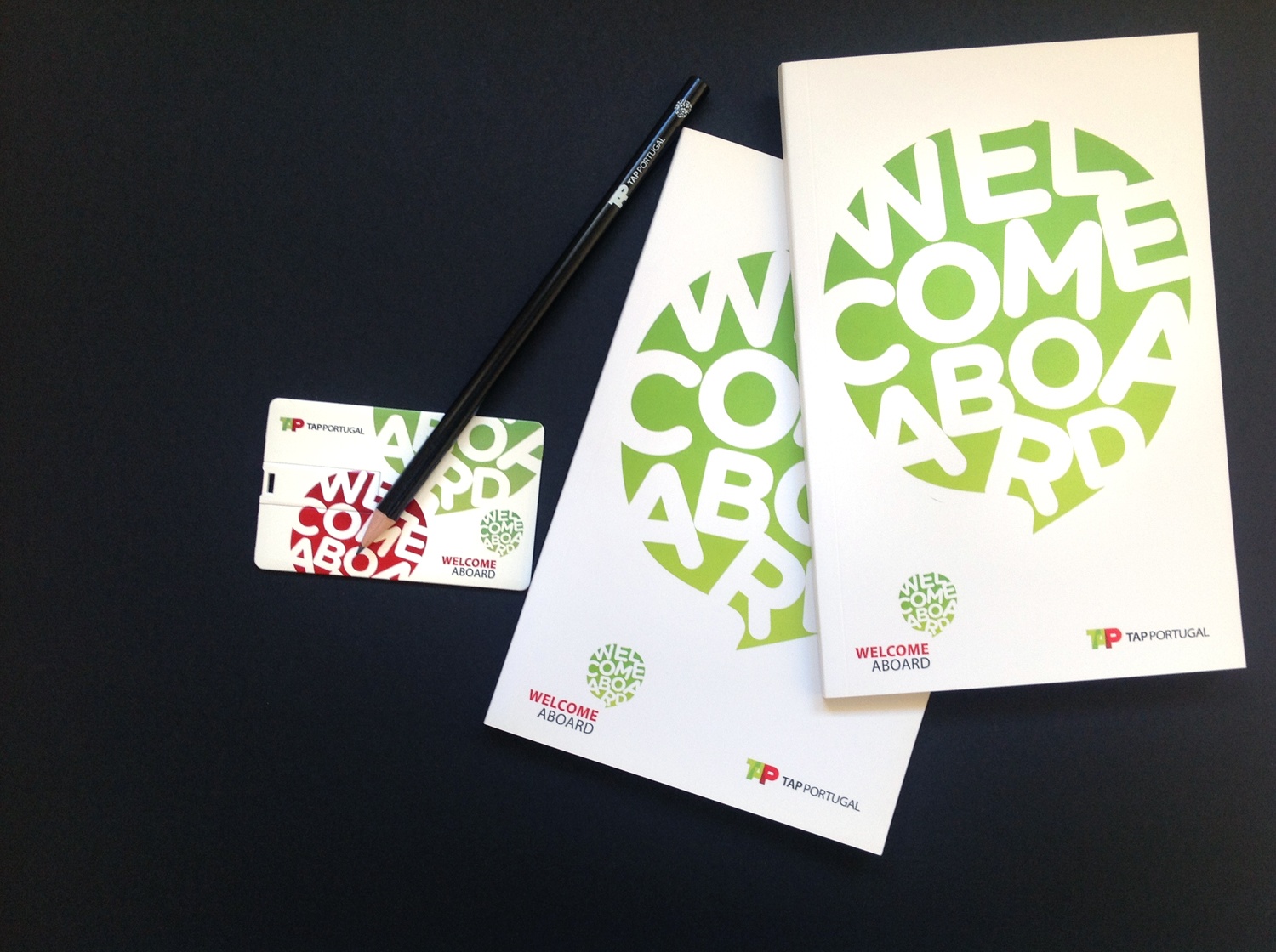 A TAP Portugal encarregou a Flúor da concepção e desenvolvimento de um Kit de boas vindas para os novos funcionários, com o objetivo de tornar mais especial e marcante o primeiro dia de trabalho do novo funcionário. Foi criada a identidade "welcome aboard" assim como uma linha de objetos a incluir no kit que incluía a carta de boas vindas do presidente da companhia, caderno, lanyard, pen, lápis e caneta. A identidade foi criada para funcionar como voz de boas vindas da companhia, daí o uso da forma "balão" e dos códigos cromáticos da identidade TAP.