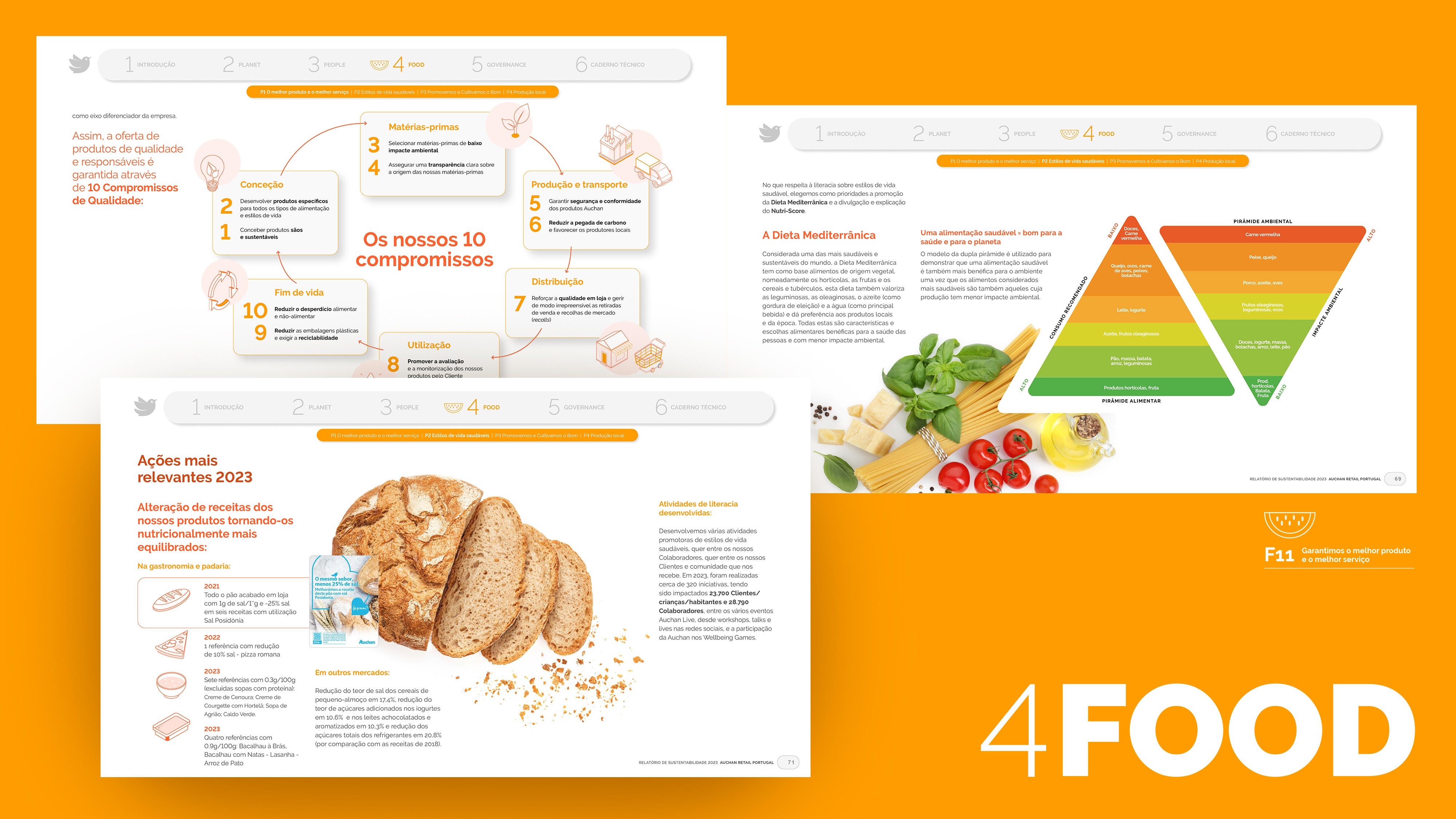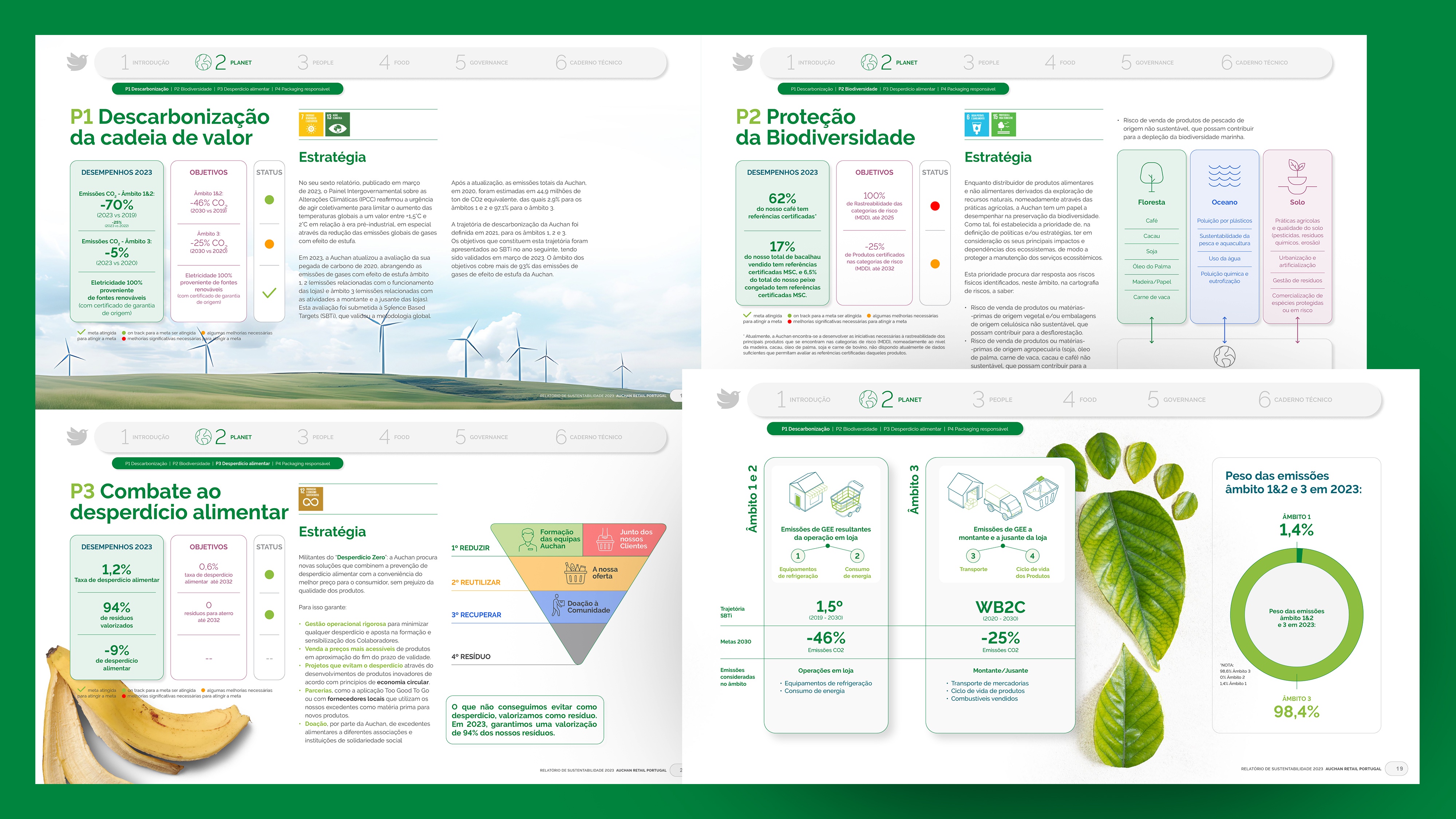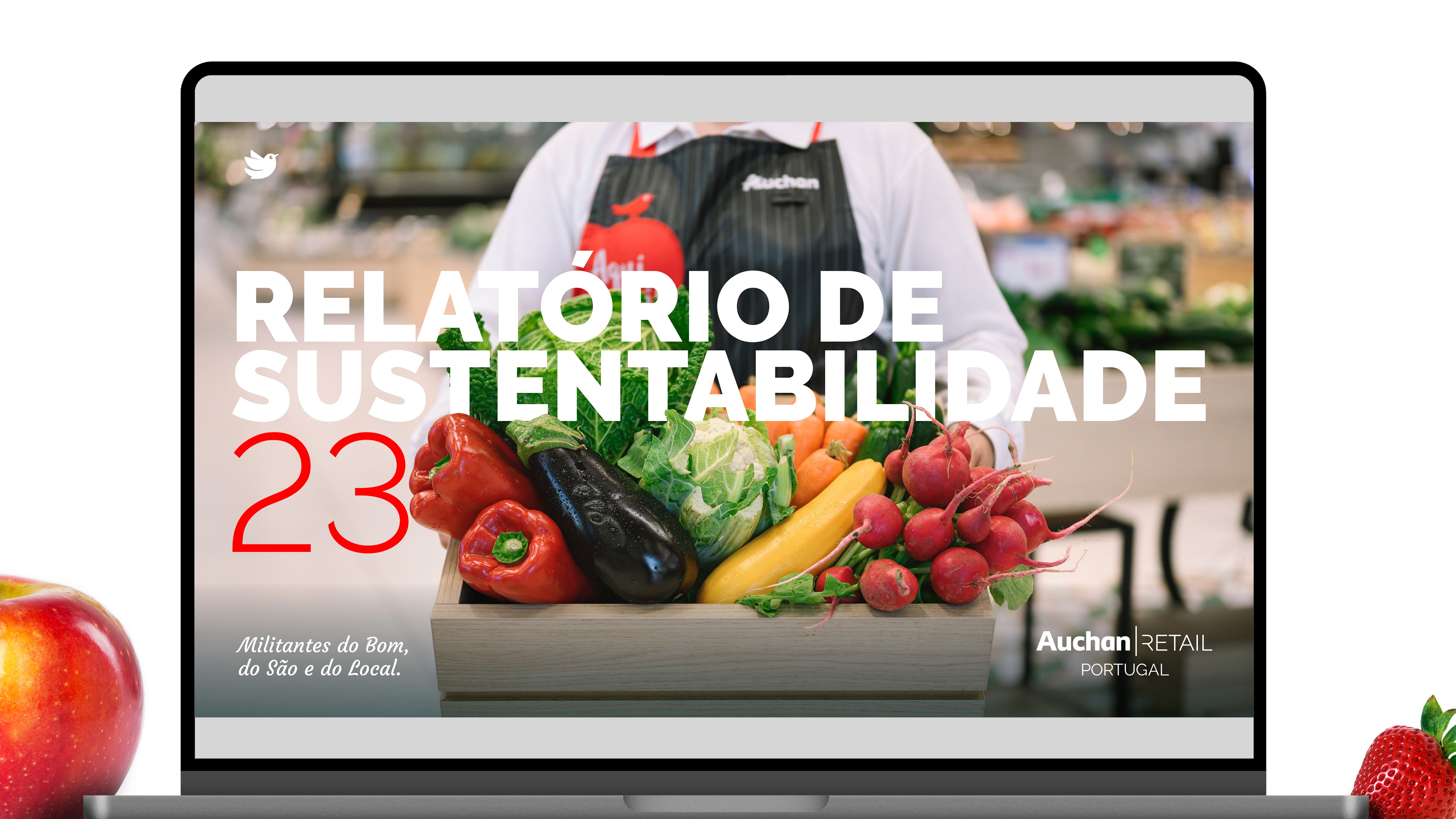 Projeto de design editorial do relatório digital de sustentabilidade de 2023 para o Auchan Retail Portugal