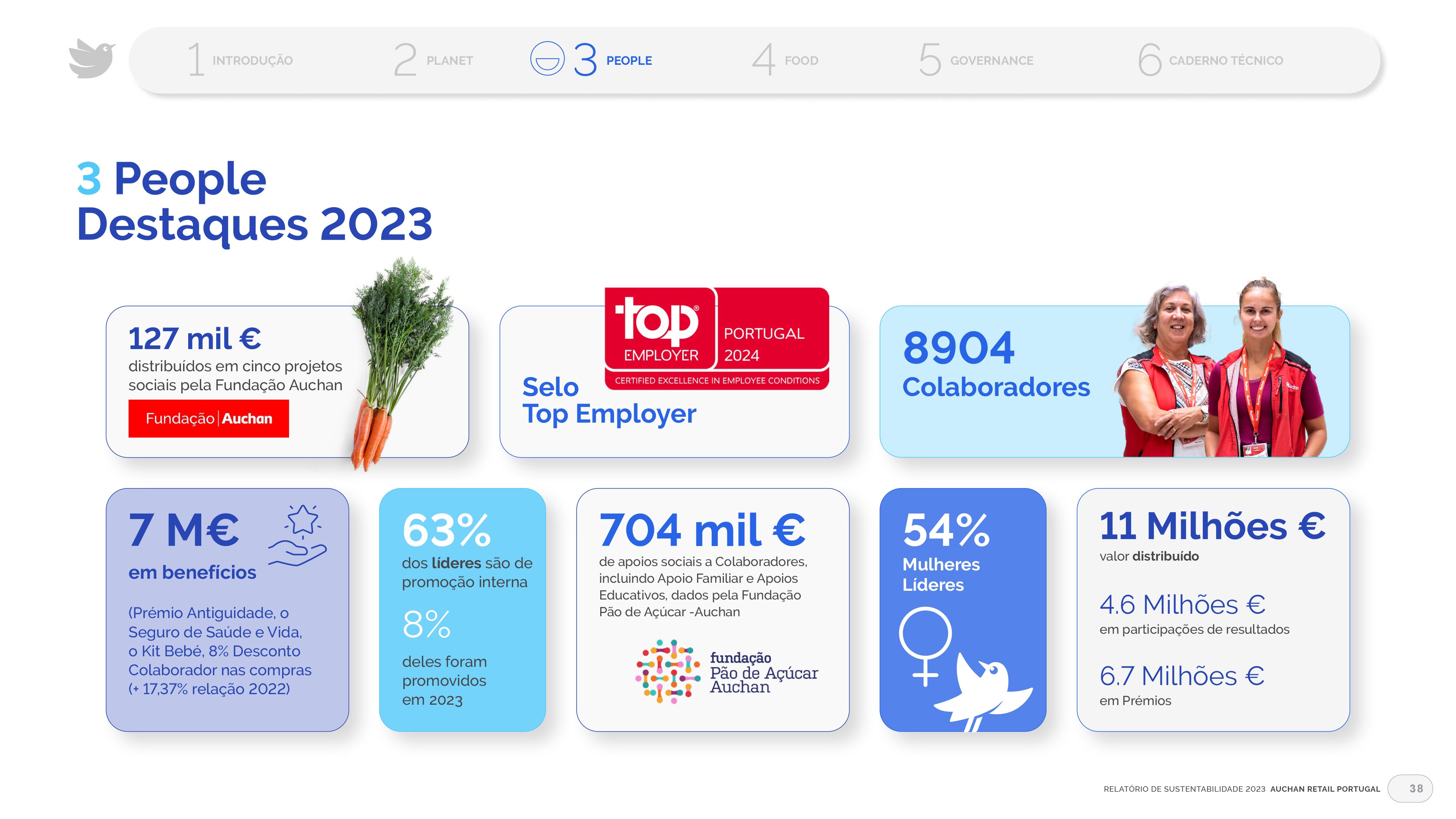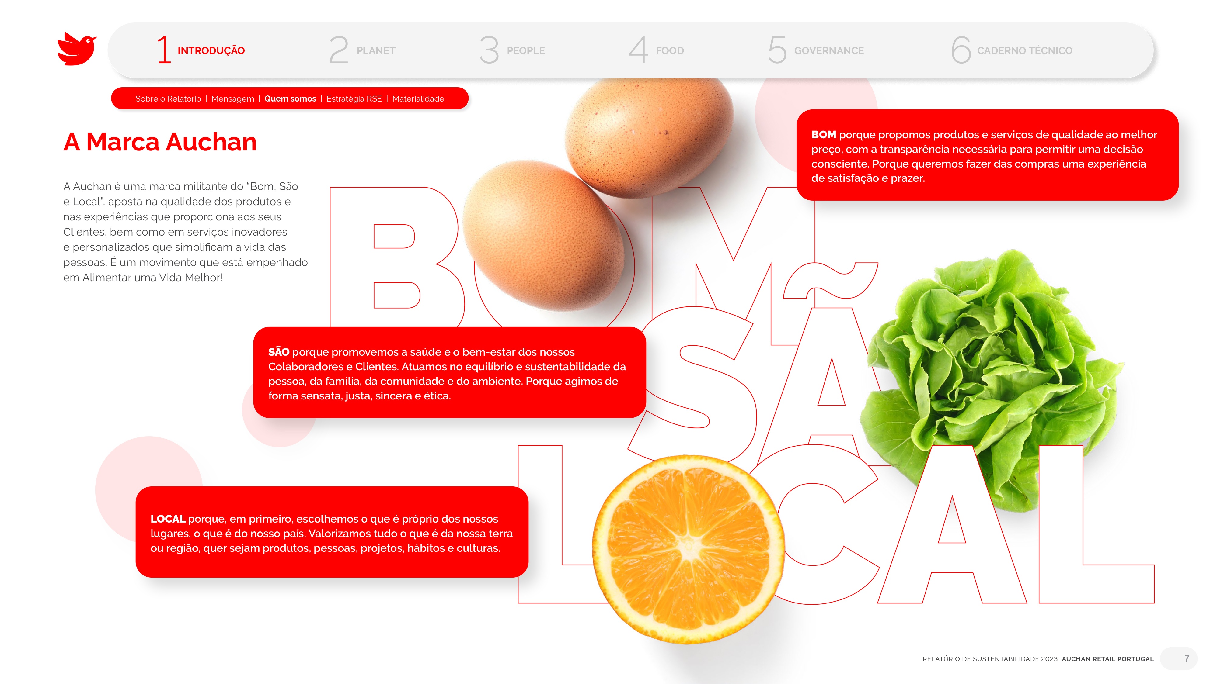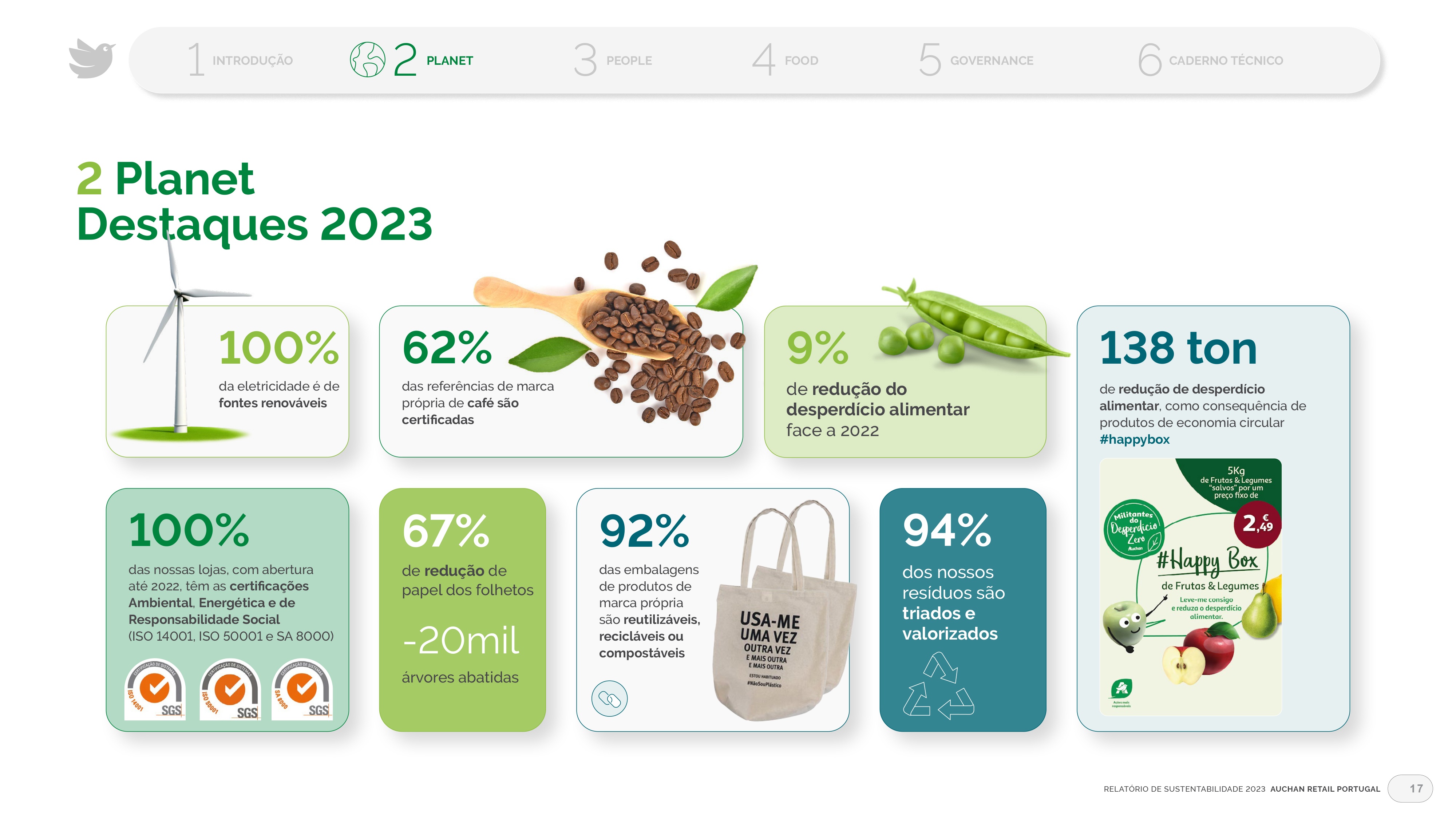 Projeto de design editorial do relatório digital de sustentabilidade de 2023 para o Auchan Retail Portugal