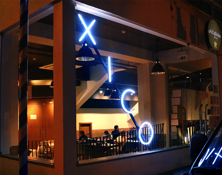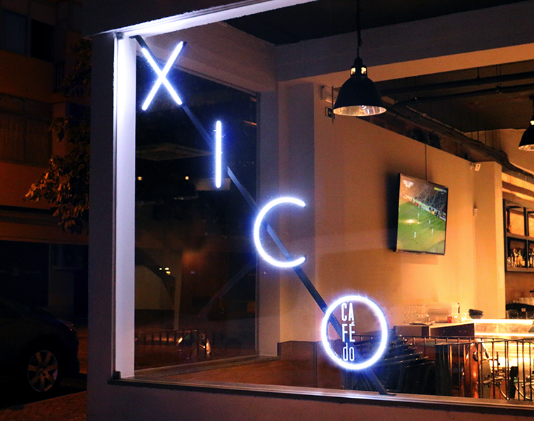 Identidade gráfica e design de marca criadas para o Café Xico em Paço de Arcos, Lisboa, que funciona como um complemento light ao Restaurante Xico, servindo refeições mais leves e petiscos. Como resultado da identidade foram criadas as peças de comunicação de apoio ao funcionamento do restaurante: fardas, ementas, cartões pessoais e neon para a grande janela exterior que é um elemento marcante do espaço.