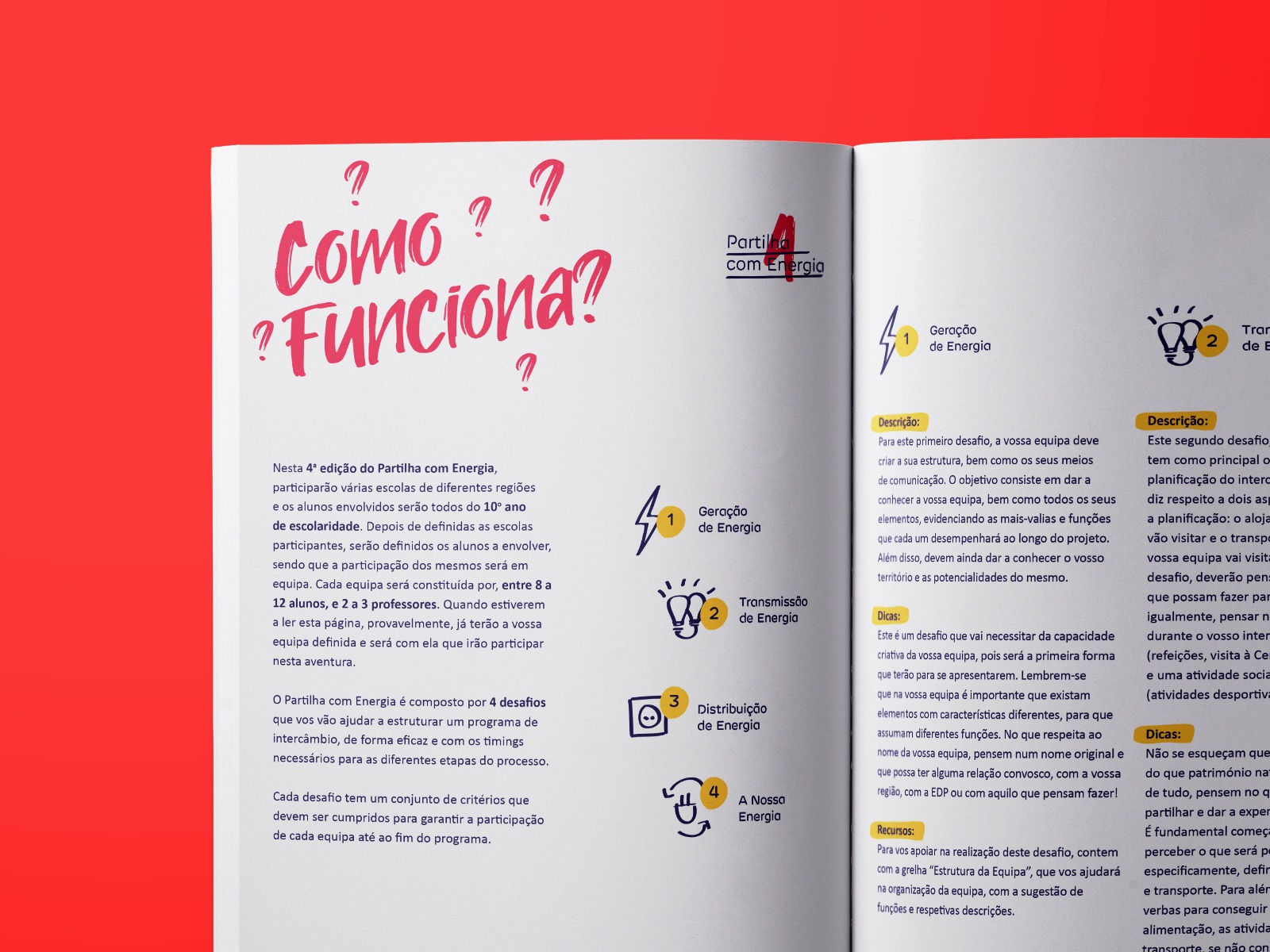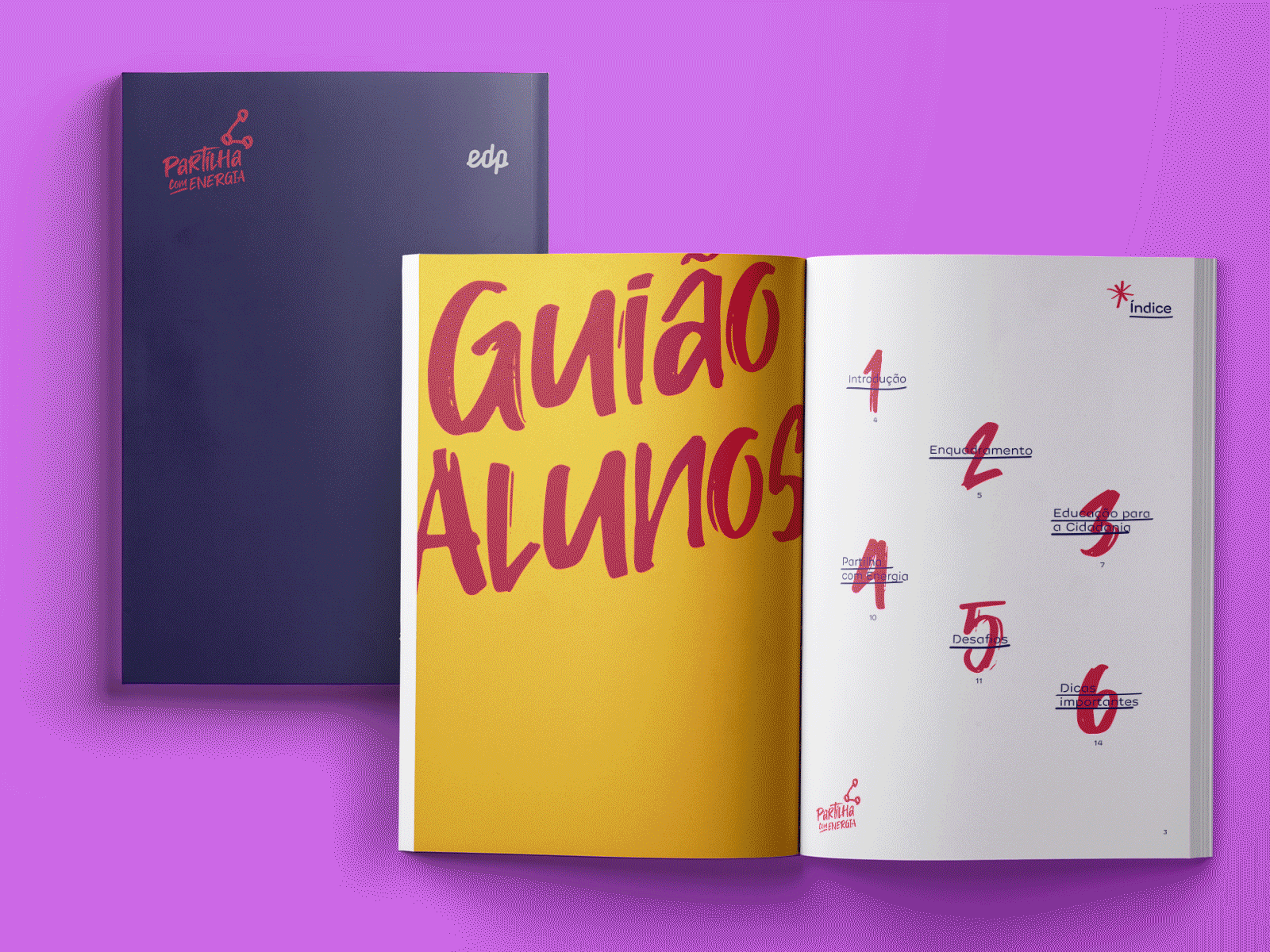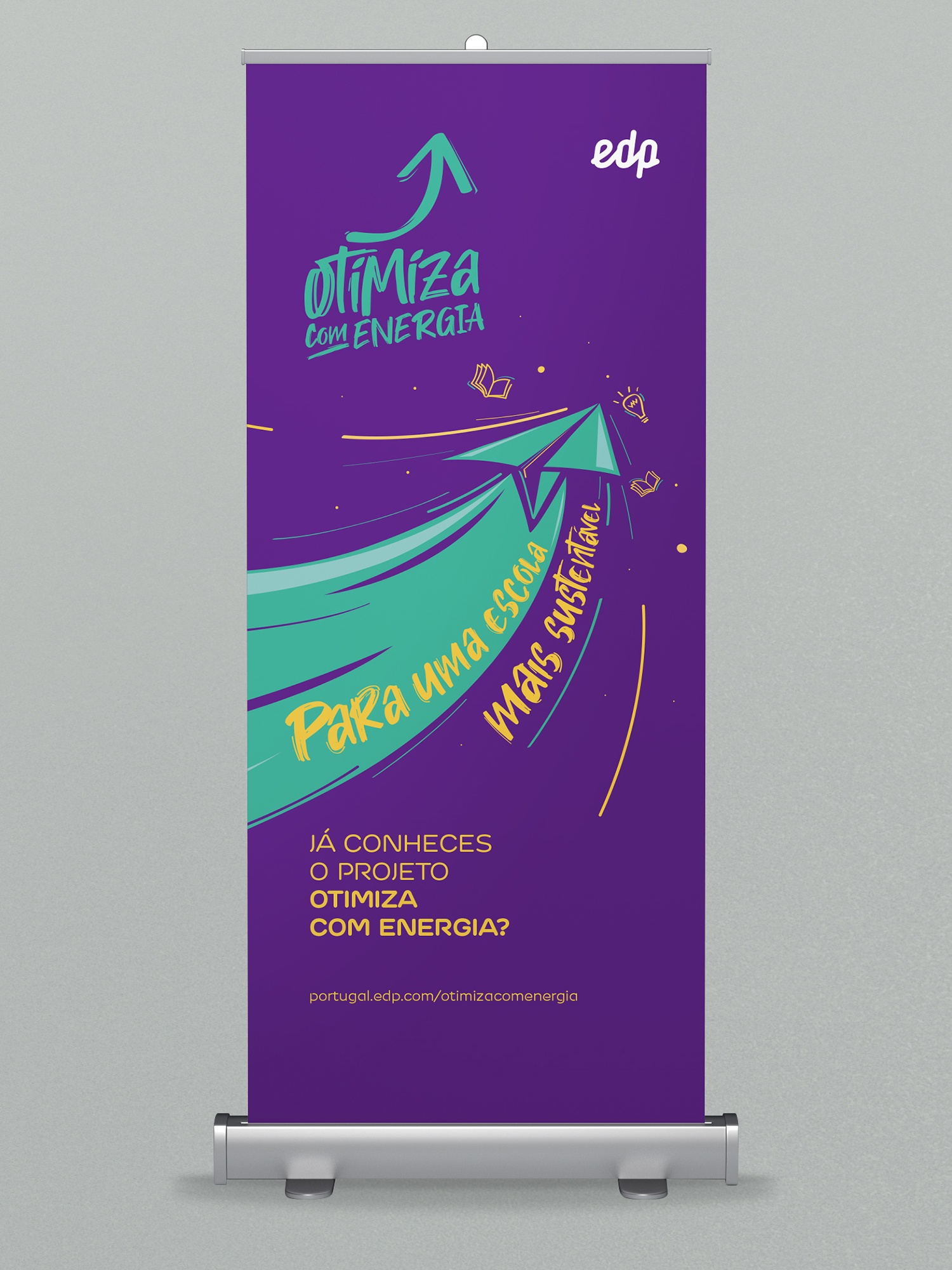 Identidade e campanha criada para o programa escolar da EDP Produção. O objetivo é apoiar várias faixas etárias em idade escolar nas localidades e áreas de influência dos equipamentos de produção de energia do Grupo EDP, e igualmente promover o intercâmbio entre escolas nas mesmas áreas.
